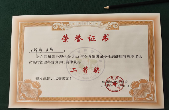 6月30日上午,由四川省护理学会举办的全省第四届慢性病健康管理学术会议慢病管理科普演讲比赛在天来大酒店举行,来自全省、市包括四川大学华西医院、省人民医院、川北医学院附属医院在内的96支代表队参加比赛,在强手如林的赛场上,我院选派的护理团队不负众望,赛出实力、赛出风采,并以具有特色的演示方式获得二等奖的佳绩。本次比赛,我院选派的护理团队以“演与讲”的形式,完美的阐述了老年误吸发生的原因、防范措施以及现场展示紧急处置-海姆立克急救法。重点突出健康宣教在慢病管理中的重要性,受到现场专家评审的高度评价,充分展现了“三医”护